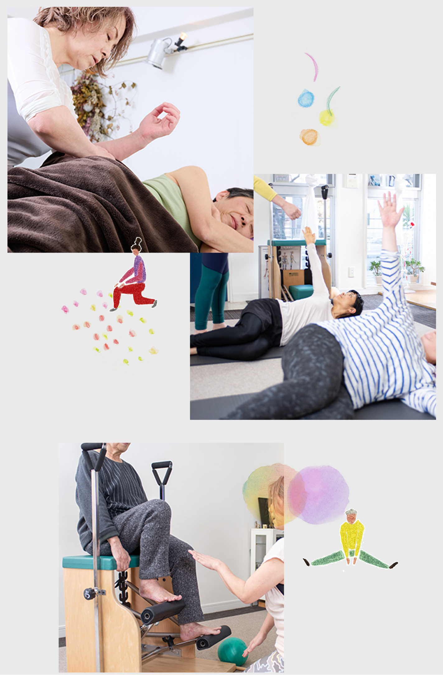 運動指導とセラピーでカラダメンテナンスを行い、それ以外の分野では専門家をお呼びしてワークショップなどを開催。生活の質を高めることを目指します。