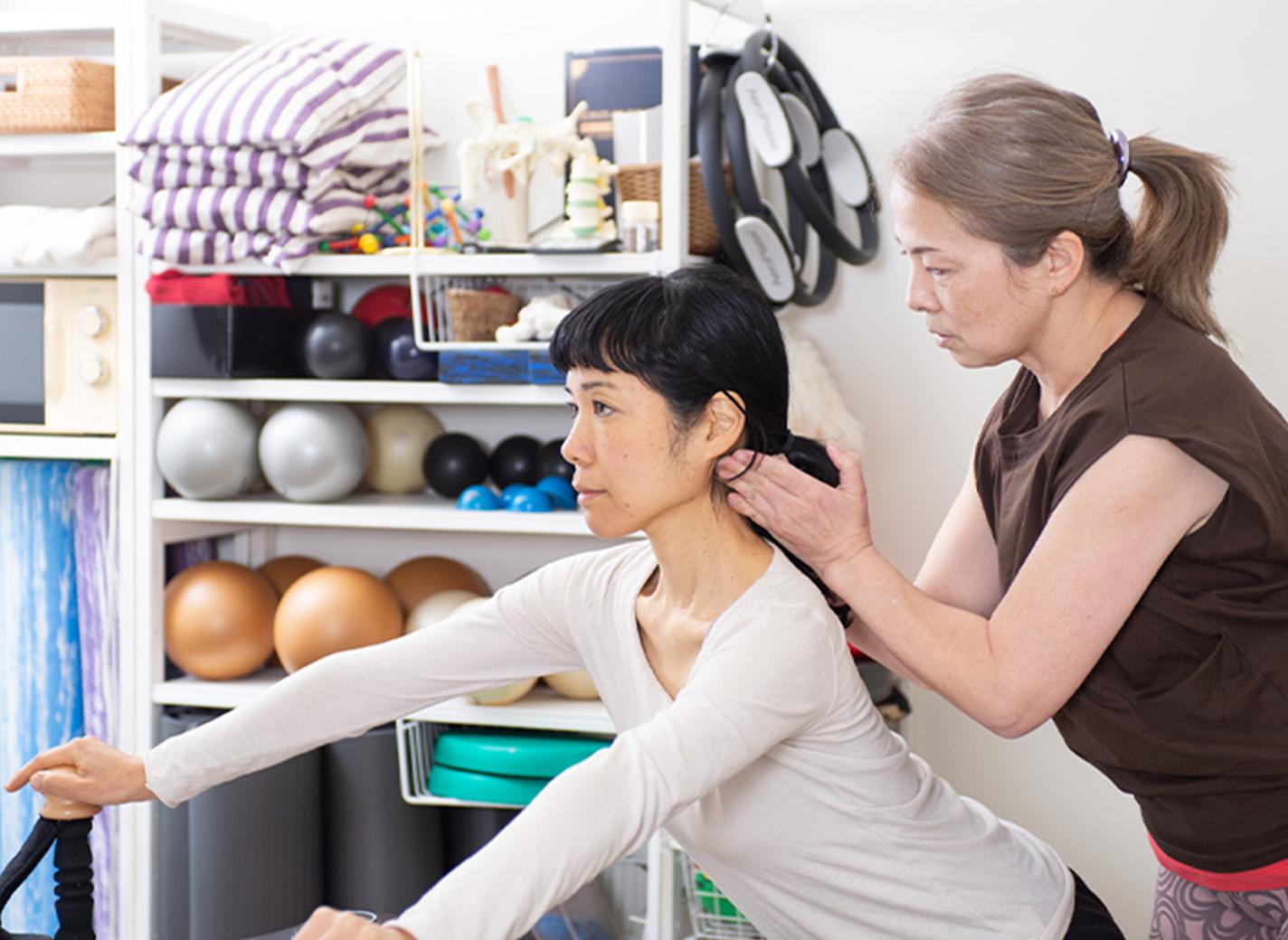 ピラティスをはじめとするボディーワークはもちろん、解剖学や筋膜の専門的な知識を深く学んだスペシャリストが直接指導します。パーソナルトレーニングなので、安心して取り組めます。